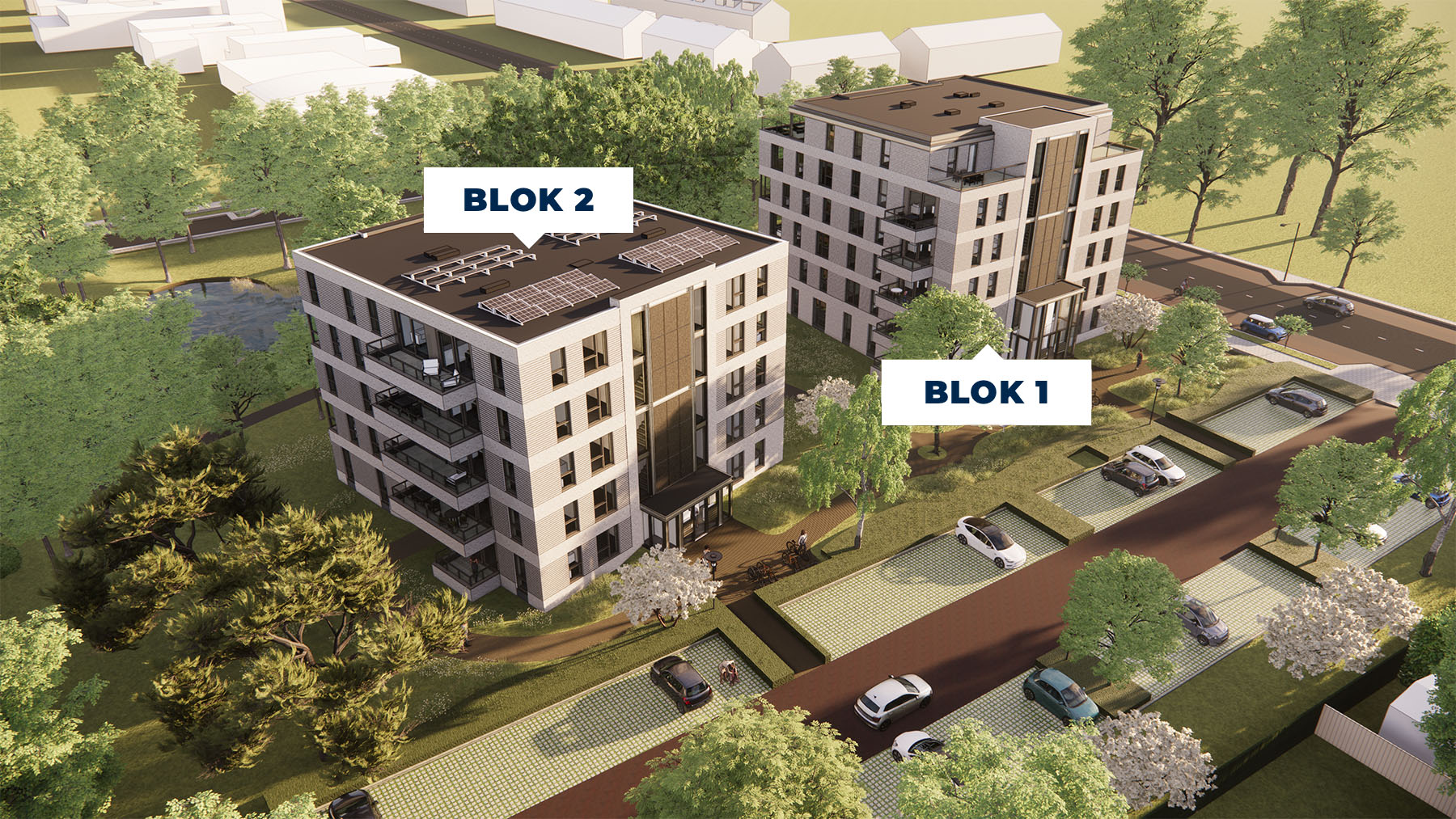 Woonblok 2 telt in totaal 28 appartementen, ieder met één of twee slaapkamers. Ook hier geniet je van een eigen balkon of terras, een ruime woonkamer met open keuken, een fijne badkamer en eeninpandige berging. Welk appartement je ook kiest, je parkeert je auto op de gezamenlijke parkeerplaats.